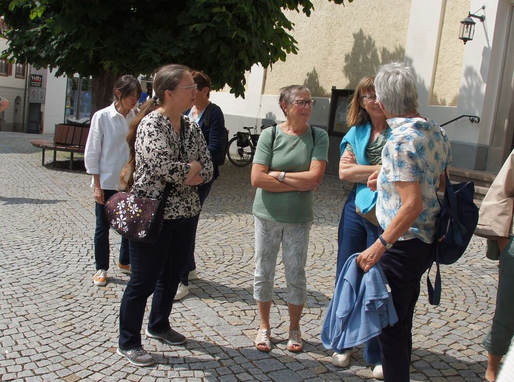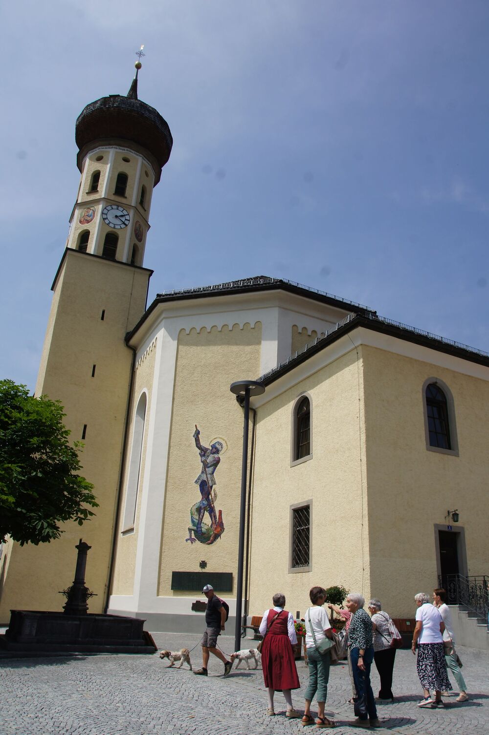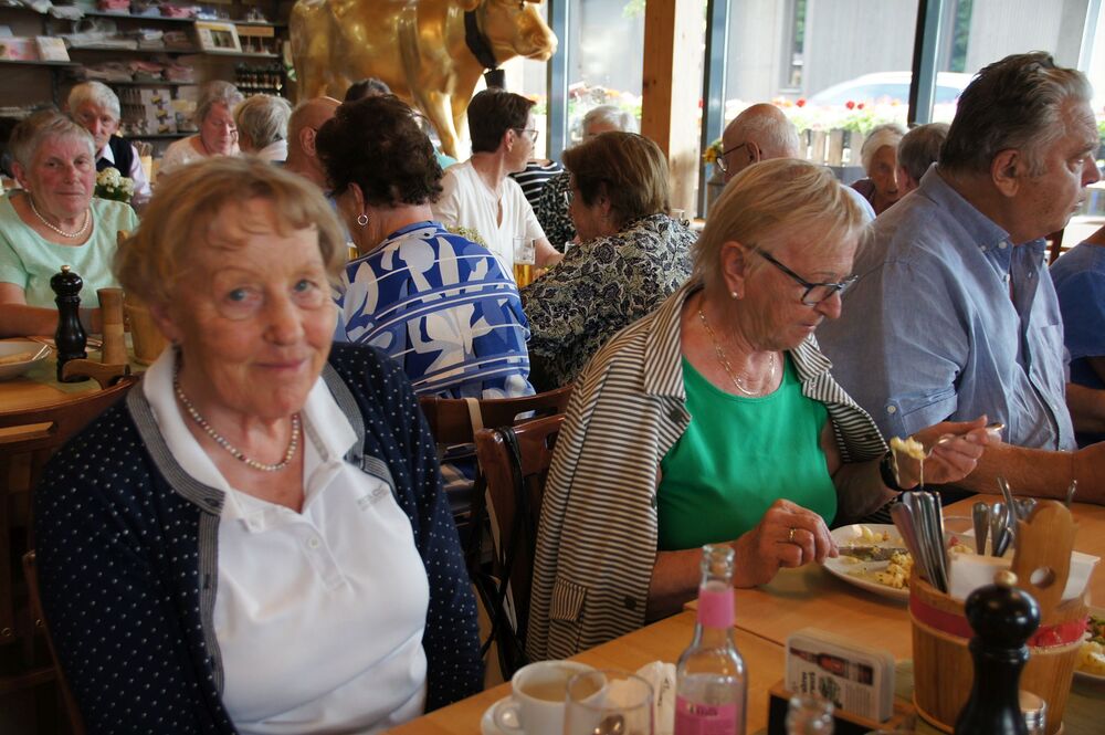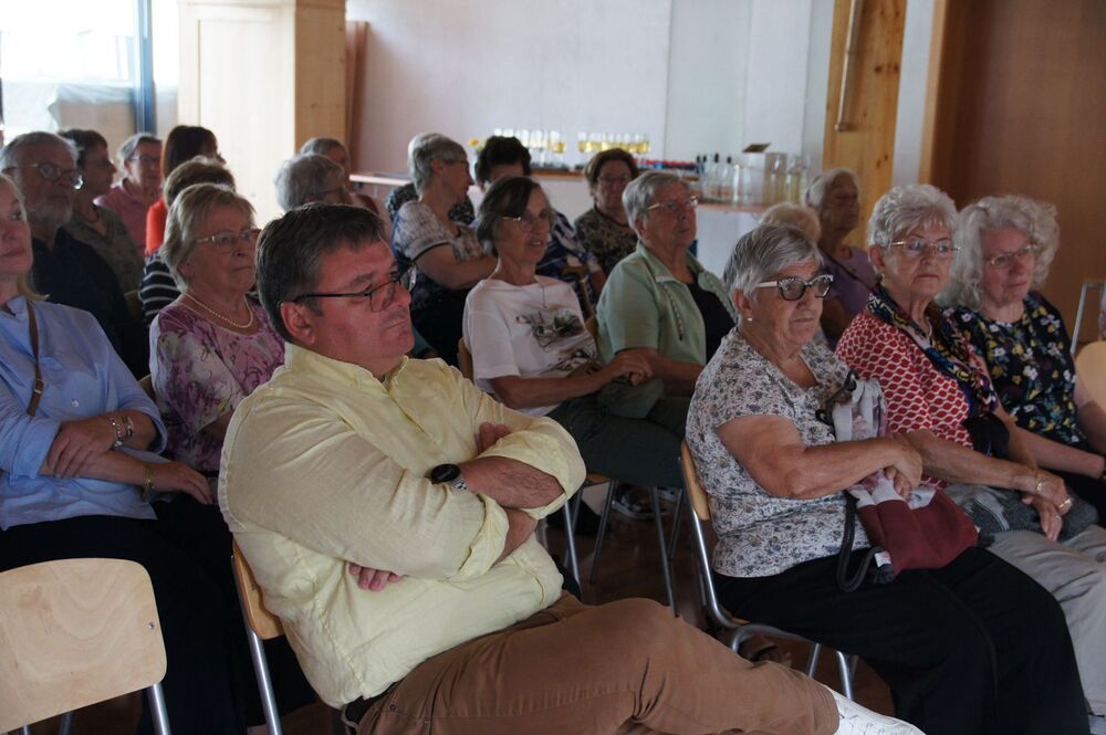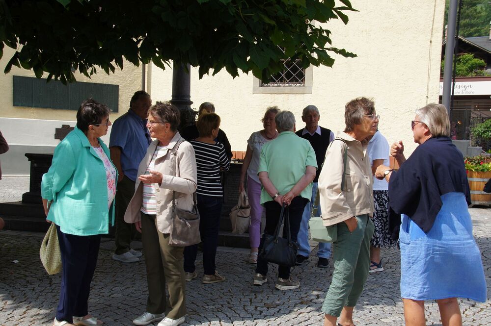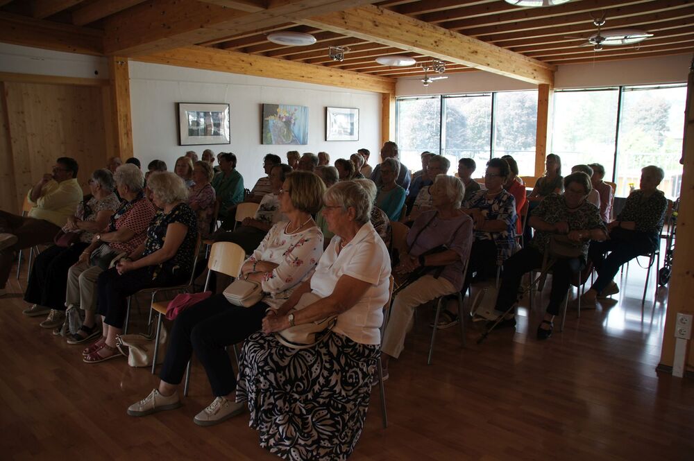 Für die Andacht wählte Pfarrer Cristinel das Thema „Dankbar für das Leben“ und Dankbarkeit war auch die Grundstimmung bei diesem Ausflug (auch wenn Wehmut und Abschiedsschmerz spürbar dabei waren). Mit den wohlüberlegten Worten und Zitaten aus der Bibel wurden außerdem die Gemeinschaft gewürdigt, positive Erinnerungen wachgerufen und die Hoffnung auf Frieden gestärkt. Danach erklärte uns Pfarrer Tinkhauser, wie er es schaffte, dass aus der Schrunser Pfarrkirche das einzige Münster Vorarlbergs wurde.