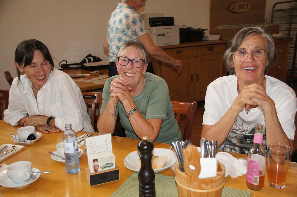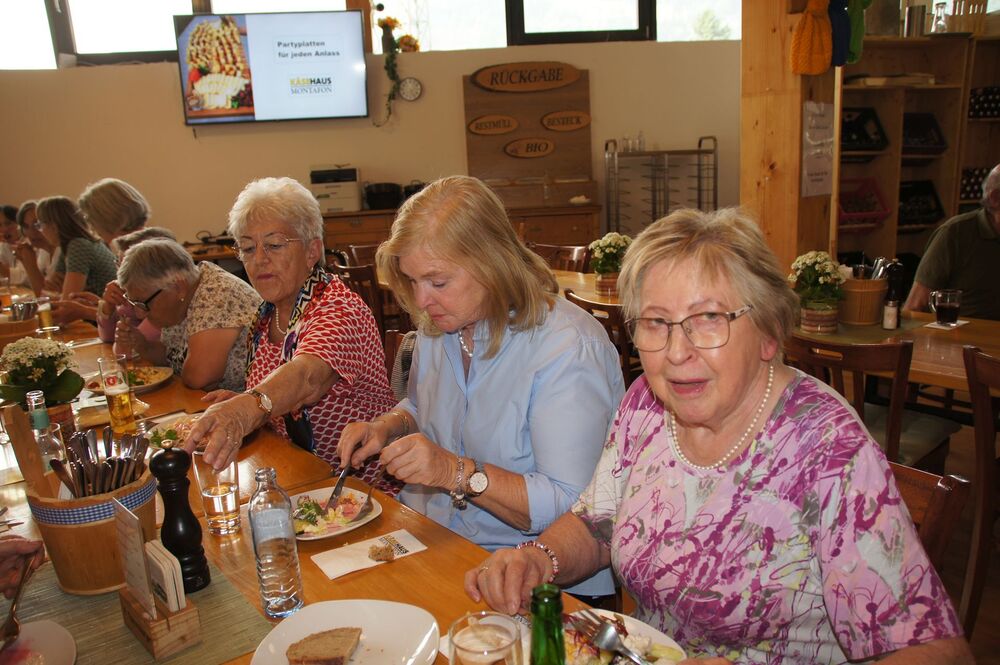 Angekommen im Käsehaus gab es zuerst eine Überraschung. Die ehemaligen Leiterinnen des AK Soziales Rosalinde Stückler und Margit Pöder berichteten gemeinsam mit der amtierenden Leiterin Edith Wiederin über die vergangenen, fruchtbaren 16 Jahre des Sozialarbeitskreises unter Pfarrer Cristinel Dobos. Dabei wurde deutlich, wie viele Aufgaben unser Pfarrer für diesen Arbeitskreis übernommen hatte und damit war auch hier „Dankbarkeit“ ein wesentlicher Punkt.